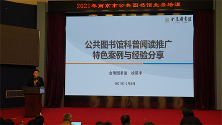 最后,金陵图书馆电教拓展部主任徐昊丰就公共图书馆科普阅读推广方面作特色案例的介绍与经验分享,他从科普与阅读推广的概念说起,着重介绍了近年优秀科普阅读推广案例的概况和金陵图书馆科普阅读品牌体系的搭建情况。