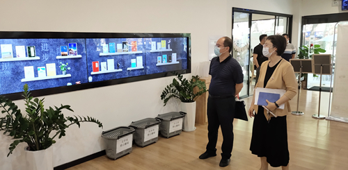 2021年新建成开放的“YUE·未来”城市书房是江北新区图书馆城市书房建设中的一次成功实践,它填补了新区市民晚间公益阅读阵地的缺口,兼具新区地域特色,所以本次调研的第一站就是“YUE·未来”城市书房。尹士亮书记对书房建设给予了高度评价,他认为,书房了突出“科技与未来”的理念,集智能化和人性化为一体,为群众提供了一处崭新的知识共享、信息交流、互动阅读的人文空间。尹士亮书记一行后又参观了图书馆各类文献室、少儿、亲子、电子/无障碍阅览室等。参观过程中,陈欣馆长还着重介绍了江北新区图书馆近年来基于“分龄分众”理念陆续打造的“星客厅·阅江北”名家分享会、“知行讲坛”知识分享讲座、 江北新区经典诵读大赛、江北新区“阅‘揽’江北”读书月、“萤火相伴”换书大会、“我们的节日·南京”朗读亭、“心目影院”为视障人群解说电影、“绘声绘色·乐学堂”绘本故事会等特色品牌阅读活动。