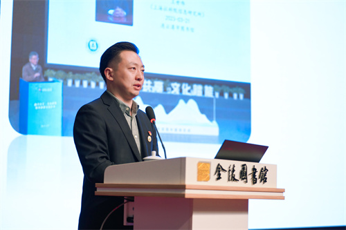 首先,金陵图书馆办公室张磊主任就特色公共阅读空间建设方面展开授课。他以江苏(连云港)海岛书房项目和连云港市图书馆为例,详细介绍了海岛书房这一新型阅读空间的建设情况,向在场听众传递了海岛书房高质量发展的三大衡量尺度,着重展示了连图展陈空间智慧化、特色化、精细化的建设思路,并在最后表达了自己对新型阅读空间建设方向的思考。