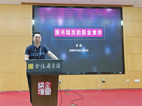 首先,金陵图书馆办公室主任张磊阐述了图书馆员应具备的职业素养,包括专业知识、服务意识、创新思维及终身学习的态度。张主任鼓励新进馆员们要不断提升自我,实现个人价值与职业发展的双赢。