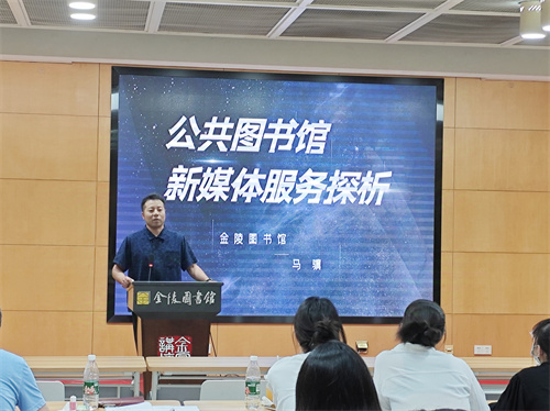 随后,金陵图书馆宣传营销部主任马骥深入解析了公共图书馆的新媒体服务。他介绍了如何利用社交媒体、数字平台等工具,拓宽服务渠道,增强与读者的互动,让图书馆服务更加贴近现代生活。