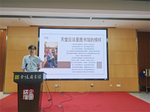 接着,秦淮区图书馆馆长助理伏龙从文旅融合的角度,展示了图书馆如何通过跨界合作,丰富服务内容,提升公众参与度,为新进馆员们提供了新的思路和方向。