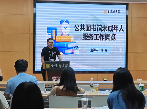 最后,金陵图书馆少儿工作部副主任周军讲述了公共图书馆在少儿阅读推广中的重要作用及具体实践。从未成年人服务对象的心理特点与需求分析、公共图书馆未成年人服务、公共图书馆未成年人服务策略、馆员自身专业性发展等多方面,为新进馆员们提供了丰富的少儿服务策略与方法。