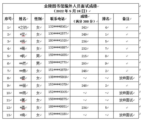 关于金陵图书馆编外人员面试成绩的公示