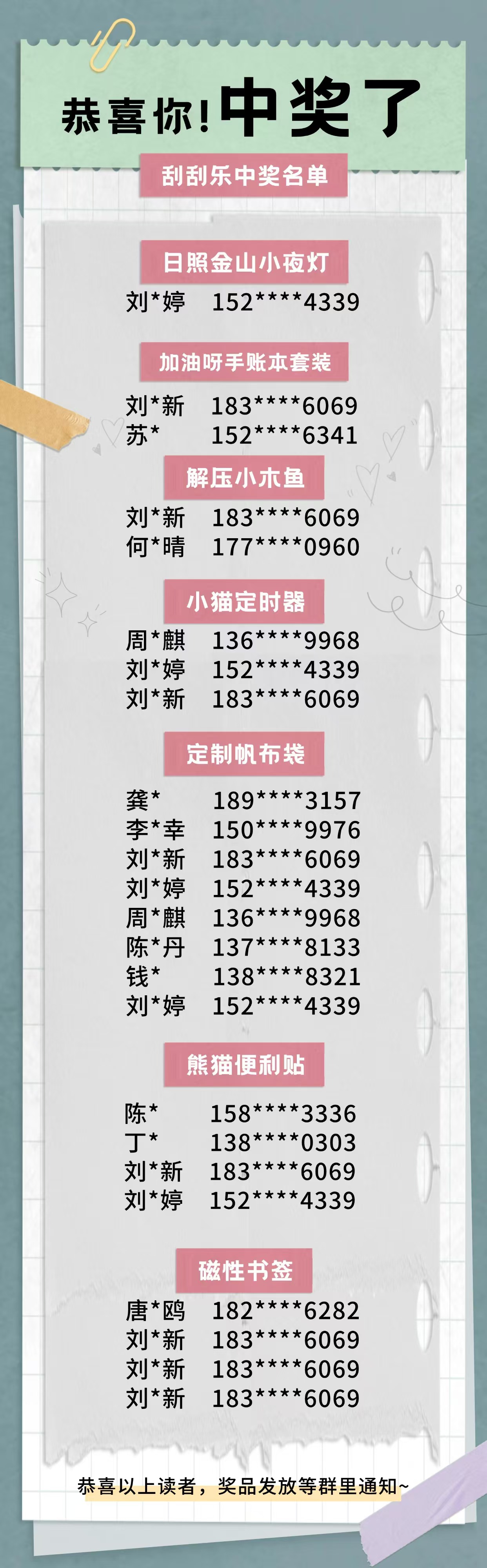 恭喜以下的幸运的读者,请您尽快下单选择送书上门,奖品将随包裹寄出。