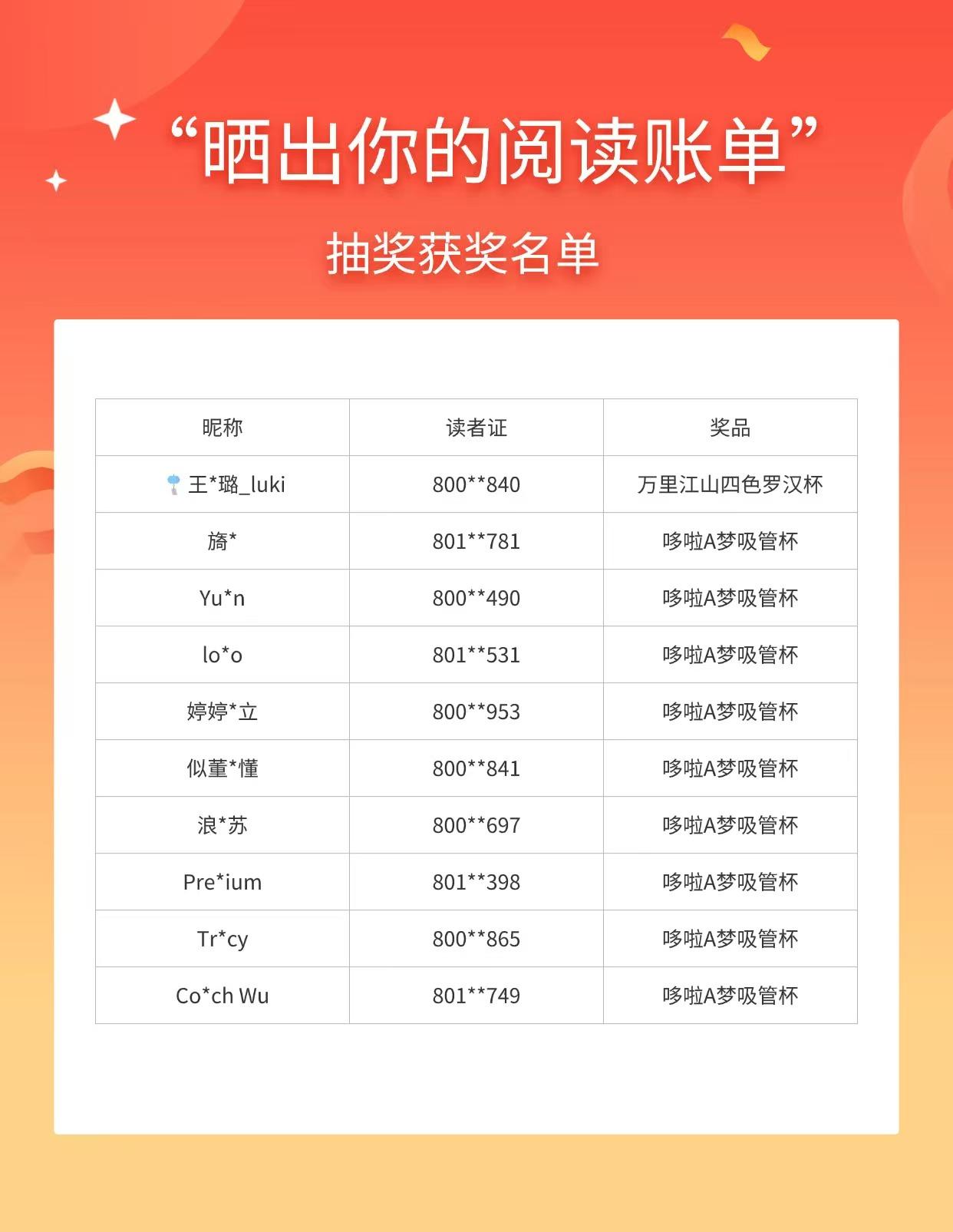 恭喜以下的幸运的读者,请您尽快下单选择送书上门,奖品将随包裹寄出。