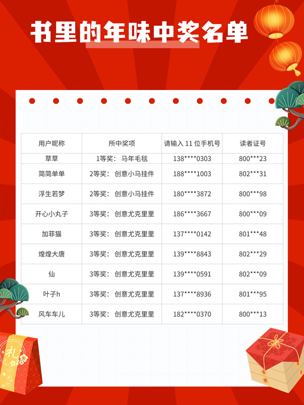 本次活动将阅读与生活相融,既丰富了大家的春节文化生活,也传递出浓浓的新春暖意。活动奖品包含马年毛毯、创意小马挂件、尤克里里等,获奖名单已于 2 月 28 日准时抽取揭晓。