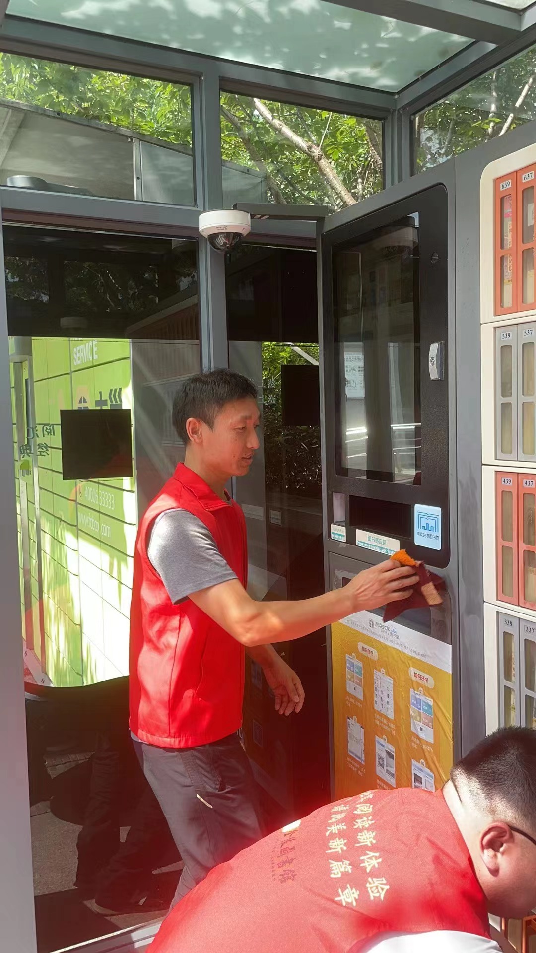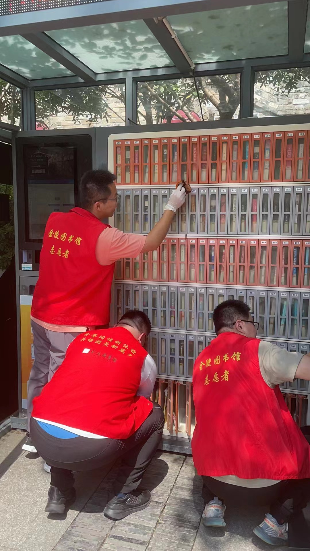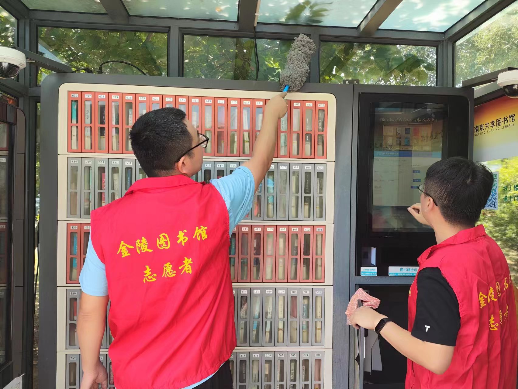 为更好发挥基层党组织战斗堡垒作用和党员先锋模范作用,金陵图书馆第一党支部于2023年8月12日开展主题党日志愿服务,支部同志利用休息日,兵分多路对我馆馆外服务网点自助设备进行保养维护、卫生清洁等工作。