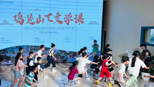 活动伊始,在工作人员的带领下,孩子们漫步在世界文学客厅,了解中国历史上第一座文学馆的诞生,领略历朝历代发生在这片土地上的文学故事,感受一段绵延千年的文学之脉。