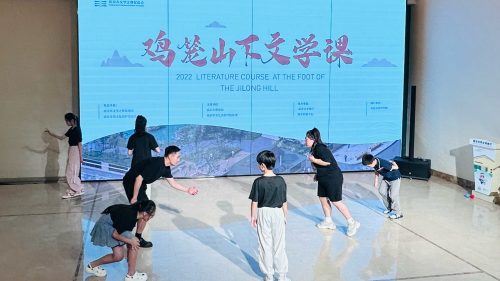 参观结束后,来自上海戏剧学院的徐阳老师为大家带来了一堂生动有趣的“鸡笼山下文学课”。徐老师将传统游戏搬进课堂,赋予了新的教育意义。她通过互动游戏的方式充分调动孩子们的积极性,借手势和口号带着孩子们真听真做真感受,体会协作表演的乐趣。