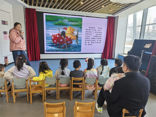 活动伊始,陈老师用生动形象的语言和丰富的肢体动作,将孩子们缓缓带入绘本《雨中的小红伞》的奇妙世界。故事中,热心的小刺猬撑起一把小红伞,在雨天里为朋友们四处奔走:它帮助小鼹鼠寻找新家、与小狐狸一起救助被困的小老鼠一家,还巧妙地帮助獾先生解决了屋顶漏水的难题。那一抹雨中的红色,不仅为小动物们遮风挡雨,更串联起了一个个关于关爱、协作与无私的温暖瞬间。孩子们瞪大好奇的眼睛,完全沉浸在小刺猬乐于助人的故事情节中,现场不时响起会心的笑声和积极的互动应答。