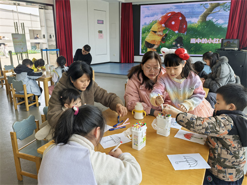 故事讲完后,进入了充满创意的延伸环节。陈老师为每位小朋友分发了一张印有小伞轮廓的线条图,邀请孩子们化身“爱心小设计师”,发挥自己的想象力,用五彩的画笔绘制一把属于自己的“小红伞”。孩子们热情高涨,有的涂上鲜艳的七彩颜色,有的变幻出兔子、小猫的造型,有的加上小雨滴和花朵。一笔一画间,孩子们不仅描绘出心中的美好,更将“助人为乐”的种子悄然播撒在心田。