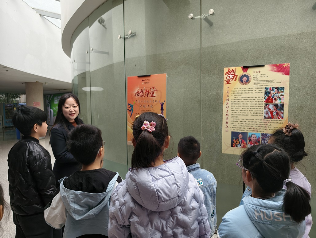 2026年3月8日,正值“三八”国际妇女节,金陵图书馆结合节日主题,举办了“阅美·明礼”我是图书馆志愿引导员专场活动。当天,由南京图书馆主办、金陵图书馆联合主办的“她力量——中国女性运动员的荣耀征途”主题展览也正在馆内展出。展览聚焦为中国各项目赢得首枚奥运金牌的杰出女性运动员们。她们不仅在赛场上创造了辉煌的成绩,更以女性的身份重新诠释了“力量”一词。她们在赛场上展现的不仅是高超的技术,更是坚韧的精神。这种精神,跨越时代,超越体育,成为激励全社会自信、自立、自强的强大动力。金陵图书馆社会活动部主任周樱格向小读者和家长们讲述了女性运动员们的奋斗故事,并与大家共同致敬每一份了不起的“她力量”。