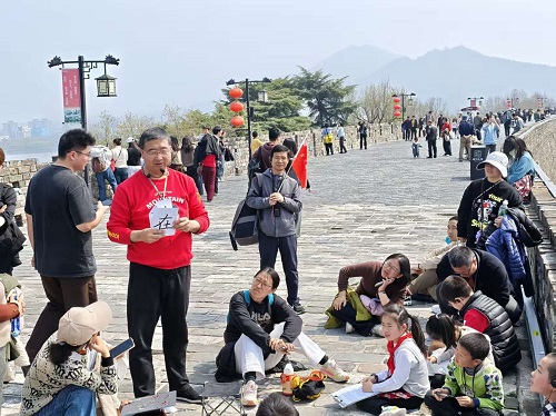 行至台城最佳观景点,大家围坐在一起,在老师的带领下开启了诗词品读环节,在眼前的实景中,读懂千年前诗人的咏叹与感怀。