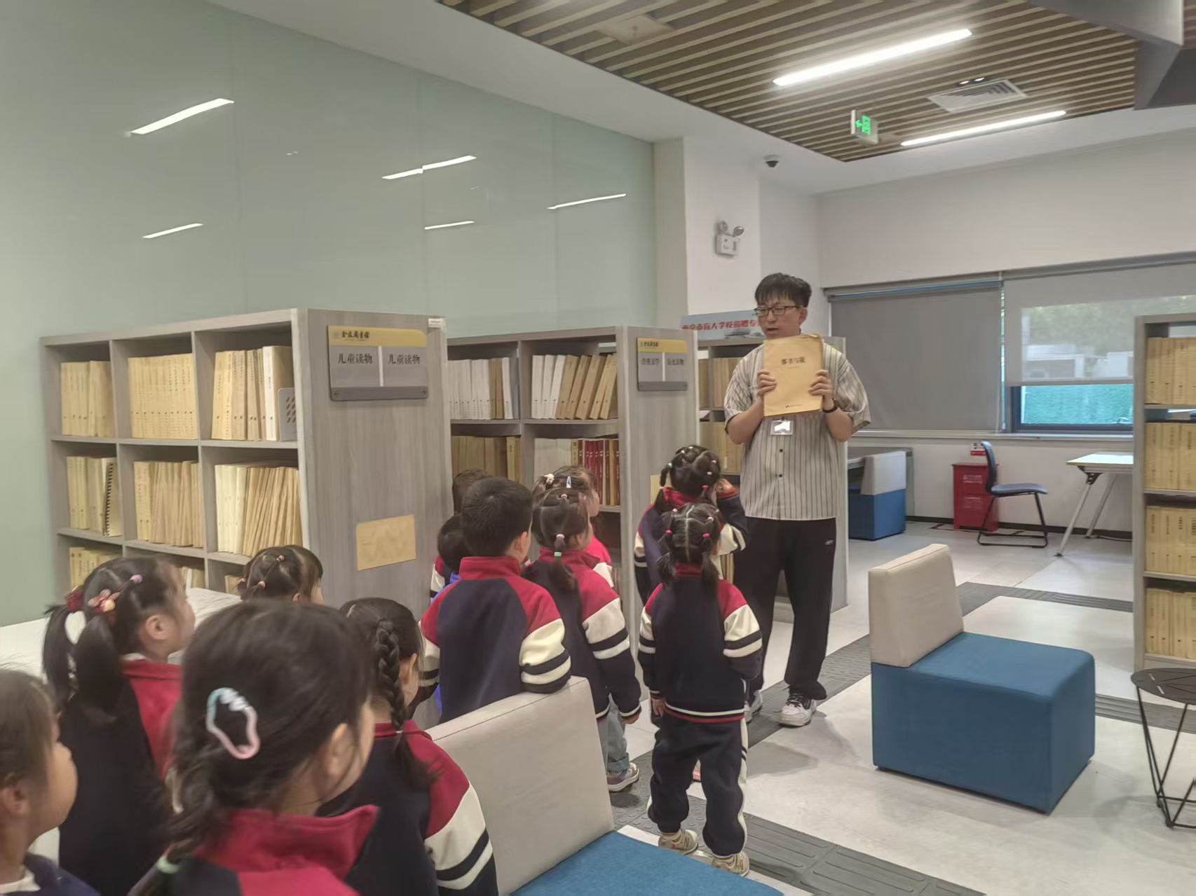 活动伊始,孩子们在少儿工作部程老师的引导下,有序参观了图书馆一楼的主要区域,包括大厅、办证处、视障人士阅览室以及深受小读者喜爱的“童·阅空间”。一路上,孩子们目光好奇,认真聆听,展现出浓厚的探索兴趣。