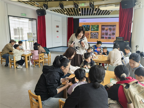 故事讲完后,活动进入了有趣的手工环节。老师带来了多种不同种类的种子,分发给小朋友们进行分类认识,并引导他们将这些种子贴在画纸上,创作属于自己的“种子画”。孩子们兴致勃勃,一边辨认种子的形状和颜色,一边动手粘贴,专注而快乐。