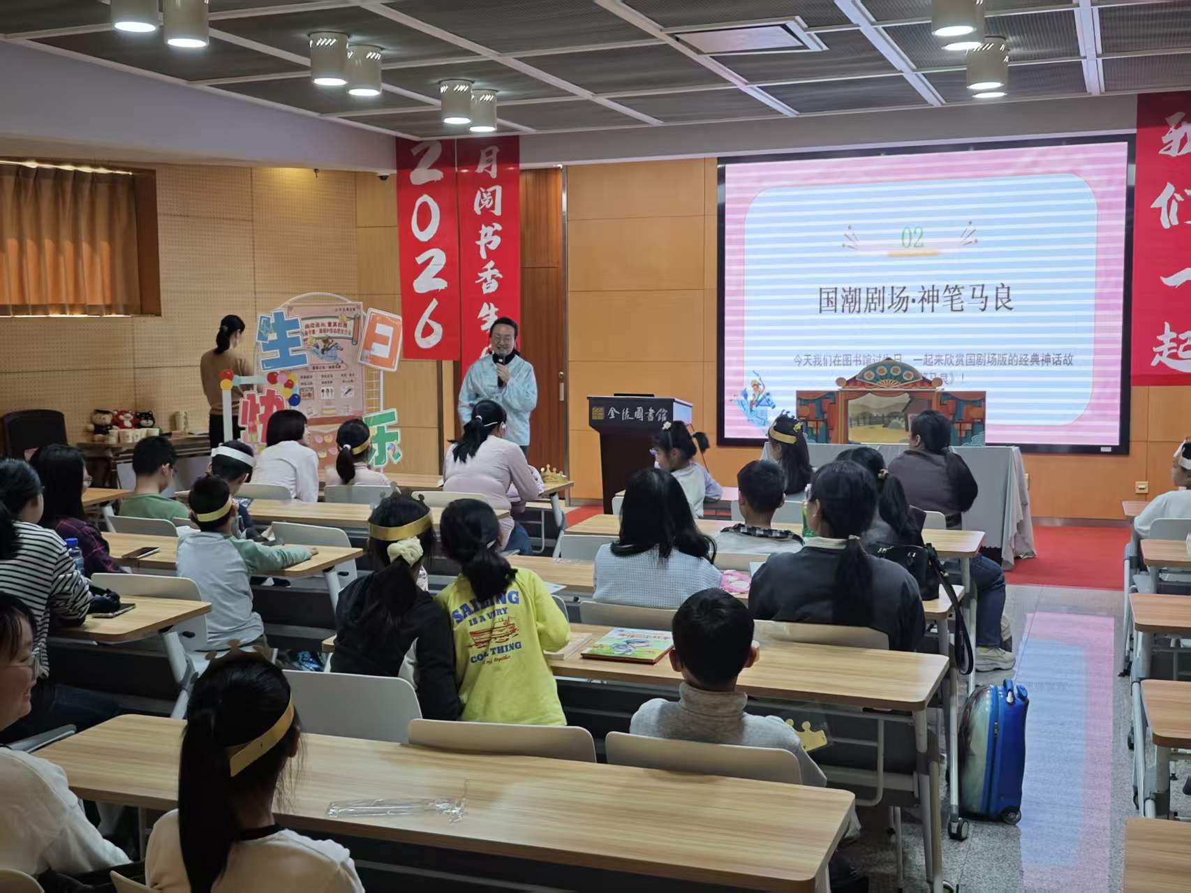 4月18日下午,金陵图书馆一楼多功能厅迎来了3-4月出生、6-12岁的小寿星们,共同参与“月阅书香·超级IP总动员”生日会第四站——智慧之光·神笔马良专场。孩子们走进中国经典童话《神笔马良》的世界,以善良为墨,以正义为笔,画出属于自己的成长光芒。