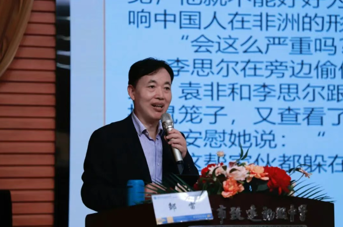 邹雷老师以“文学是一束温暖的成长之光”开篇,用亲切生动的语言,带领同学们走进长篇小说《金色阳光》。他结合书中袁非改名的小烦恼、“旺鸡蛋”的非洲奇遇、猴子“援援”的趣味故事、非洲蚂蚁与蝎子的震撼场景等鲜活片段,娓娓道来创作背后的真实初心——致敬中国援非医疗队,传递跨越山海的大爱与温暖。
