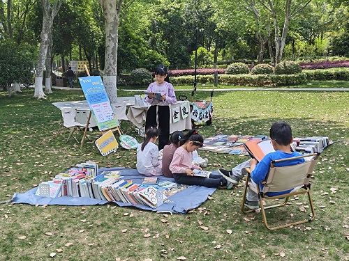 当天,我们采用开放式布局,与公园的绿植、步道自然衔接,没有了传统图书馆的沉闷感,取而代之的是风吹树叶的沙沙声与翻书声交织的惬意。图书内容上,我们精选了涵盖少儿科普、文学经典、生活百科等多个类别的图书,以满足不同年龄读者的需求。“平时带孩子来公园,能顺便找本书看,真的太方便了!”带着5岁孩子在阅读恐龙科普绘本的王女士表示,在公园里阅读喜欢的图书,真是让阅读变得轻松又自然,希望以后多多举办类似的活动。