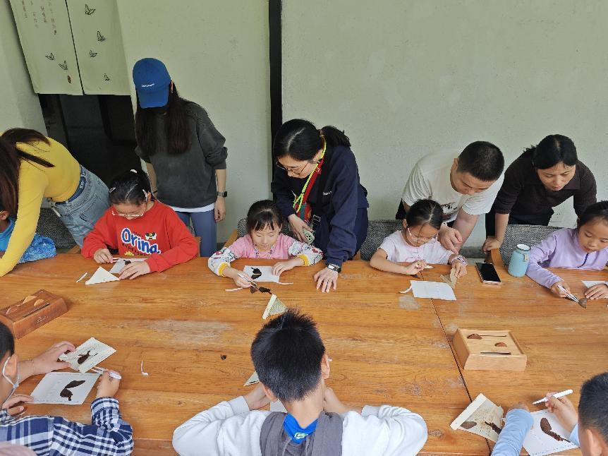 最后,张馆长带领小朋友们学习制作了蝴蝶标本,材料来源于蝴蝶养殖基地中生命走到尽头的蝴蝶。在小朋友们小心翼翼地操作中,活动来到了尾声。