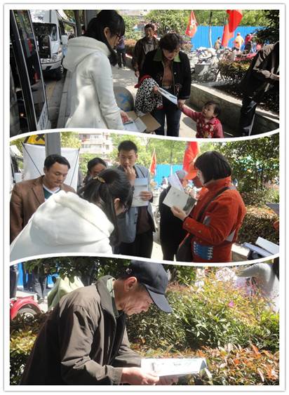 现场众多市民对金陵图书馆带来的公益文化服务表现出了极大的兴趣,咨询办证、借还图书和索阅刊物的不仅有本地的社区居民,还包括路经现场的外来务工人员和工间休息的环卫工人等,甚至有人在现场就饶有兴趣地看起来刚拿到的图书杂志。