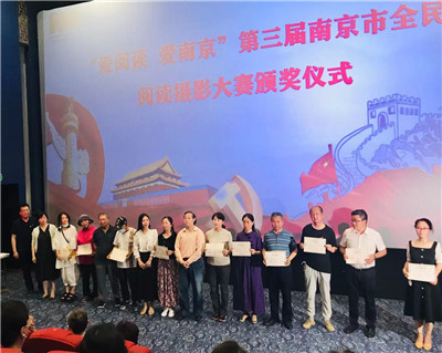 由金陵图书馆联合南京市全民阅读促进会、南京金陵书苑图书发行公司共同主办“爱阅读 爱南京”第三届南京市全民阅读摄影大赛颁奖仪式也在活动当天举行。全民阅读需要全民参与,全民阅读更需要向全民展示,大赛于2021年2月启动,鼓励市民朋友通过镜头的捕捉,配上有温度的文字,展现南京市全民阅读取得的丰硕成果,提升市民对阅读的兴趣和憧憬。历时3个月,共征集到2000余幅作品,经美术家协会专家评审,最终共评选出优秀作品36副,由南京市全民阅读促进会常务副会长徐开利、金陵图书馆副馆长潘洁、南京金陵书苑图书发行有限公司总经理陈南柯共同为获奖者颁奖。