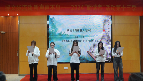 随后,金陵图书馆“朗读者”文化志愿者们开始了精彩传情的朗诵展演——缤纷之《谷雨》,思《少年为何而读书》。《爱在江南》,把悠然长情,化为《写给春天的诗》,脉脉《乡愁》,《当翻开的书页铺满我的梦》,我们要《且惜春光且种希望》,在这辉煌的时代,《烽烟已散节气长存》,《我们是一群追梦的孩子》,我们要在《长江》之滨,书写自己的故事。精彩的朗诵赢得了现场观众的热烈掌声。