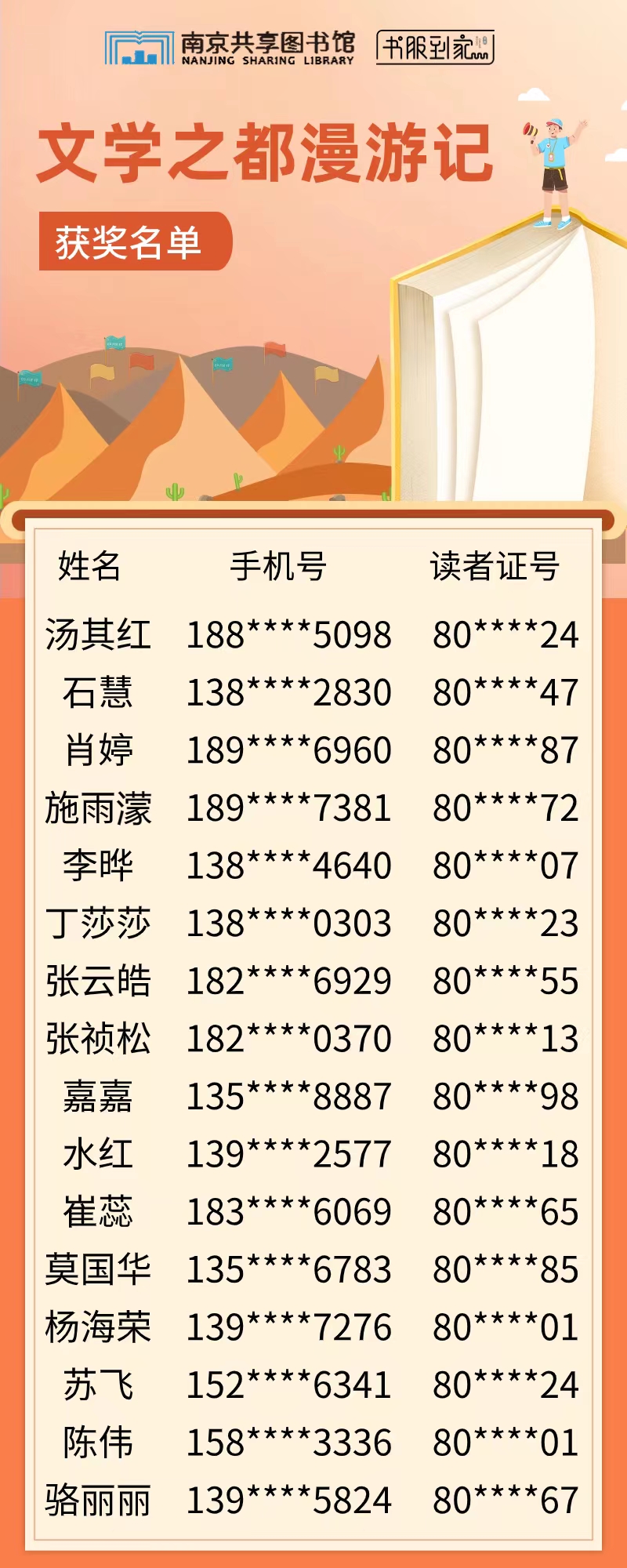 为进一步落实全民阅读根本任务,积极引导读者通过阅读经典开阔视野,南京共享图书馆面向读者开展“文学之都漫游记”为主题的活动,以期更好地引导和鼓励读者与书为友,养成多读书、读好书的良好习惯。