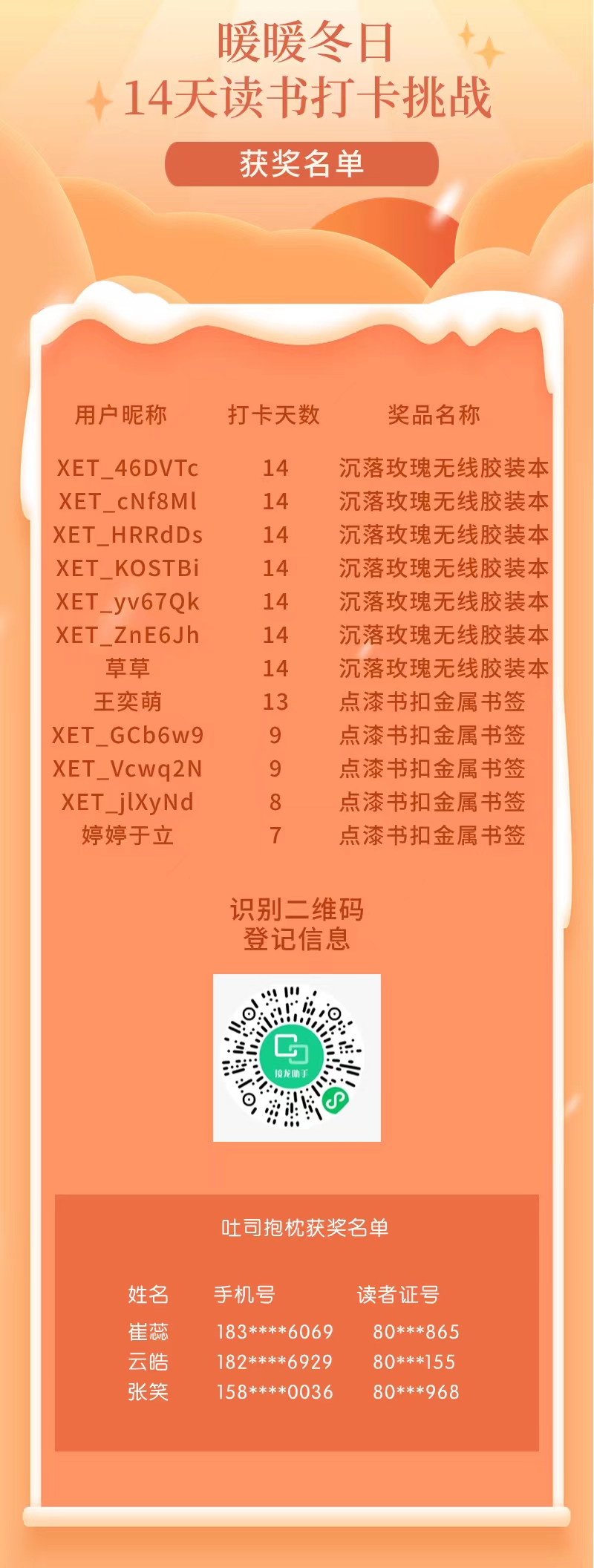 【书服到家】“暖暖冬日”阅读打卡获奖名单公布啦~