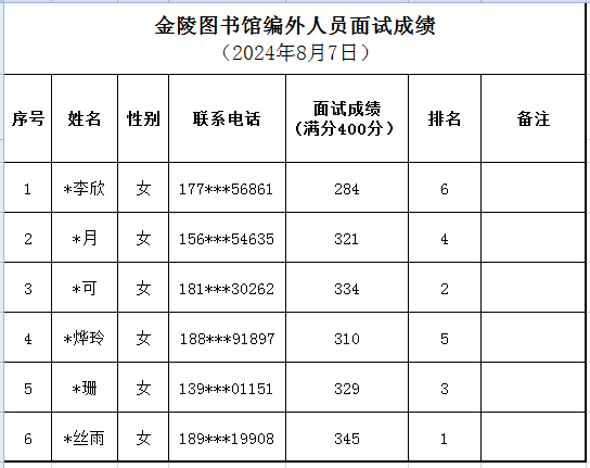 关于金陵图书馆编外人员面试成绩的公示