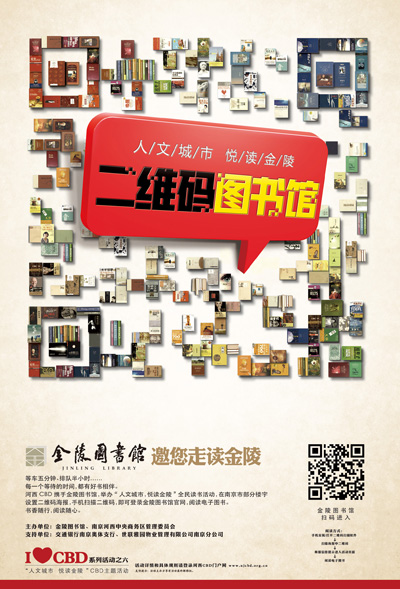 为积极参与国家数字图书馆推广工程,作为“金陵书香飘建邺”建设学习型城市、推广全民阅读、打造独具魅力的智慧人文都市创新举措的重要内容,金陵图书馆携手河西CBD,于国庆期间,研发推出“人文城市,悦读金陵”手机数字图书馆的移动阅读体验服务,帮助大众利用点滴时间进行悦读,您可以用手机扫描设置在各大楼宇海报中的二维码,登录金陵图书馆手机网站,进行掌上阅读。