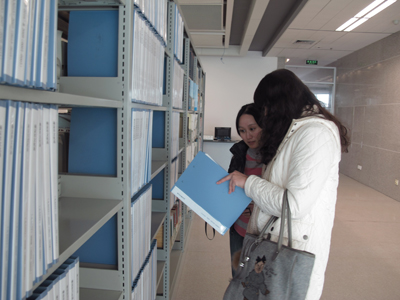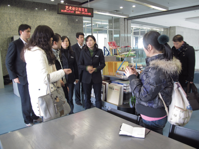 在一楼的视障阅览室,考察团领队、上图读者服务中心管益平副主任谈到,金陵图书馆能够充分发挥自身的信息资源、知识资源优势,在馆内专门为视障人士开设阅览室并在“手佳”盲人按摩中心特设分馆,打破了以往“送书上门”的单一方式,实属难得,充分体现了金图在关爱弱势群体方面所做出的不懈努力。此外,在参观艺术设计阅览室时,考察团也对我馆艺术文库的中英文书籍分类体系表现出了极大的兴趣,并详细向该部门负责人询问了我馆自创的西文书主题分类法。