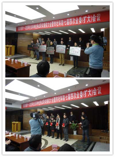 会议宣读了了多份表彰通报。其中,我馆被全国社会科学普及工作经验交流会组委会命名表彰为全国人文社会科学普及基地,被江苏省社科联表彰为省社科普及示范基地,我馆杨长进、张磊、俞荣荣等同志被南京市社科联表彰为2012年度科普工作先进个人。我馆尹士亮副馆长及相关受表彰人员上台领奖。