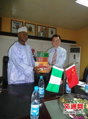 在尼国家图书馆,金陵图书馆馆长严峰和尼日利亚国家图书馆馆长贾托共同主持了图书赠送仪式。金陵图书馆向尼日利亚国家图书馆赠送了250本中国近期出版的英文图书,内容主要包括中国经典文学名著、中国知名作家著作、介绍南京的著作以及儿童文学著作。严峰馆长表示,希望通过与尼方的合作,在尼国家图书馆中设立“中国图书之窗”的形式,让尼日利亚人民更了解中国,用知识的力量带动文化的交流,促进中尼友谊深入发展。