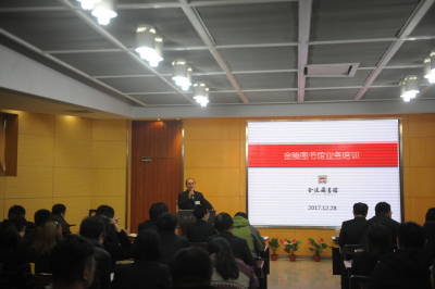 2017年12月28日,金陵图书馆2017年度的最后一次业务培训活动在金图多功能厅举行。培训由尹士亮副馆长主持,包括编外人员在内的全馆业务工作人员100余人参加培训。与以往培训大多为单一主题不同,本次业务培训活动分为两个部分,第一部分为馆员外出学习成果汇报交流,第二部分由馆领导通报我馆参与公共图书馆评估定级工作情况。