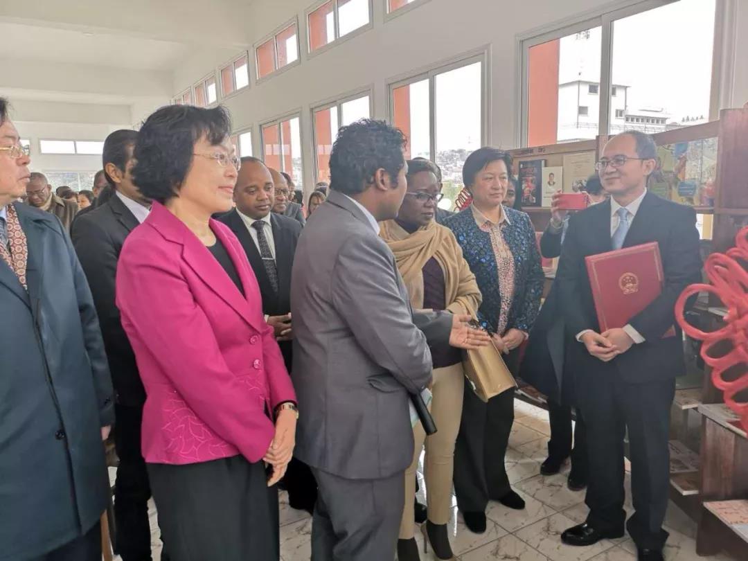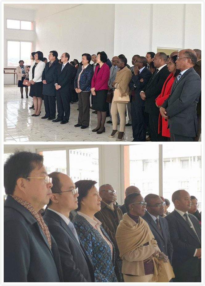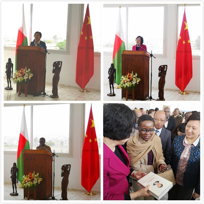 中国驻马达加斯加杨小茸大使、马达加斯加文化部埃莱奥诺尔•祖哈西部长、南京文广新局蒋晓芬副巡视员、马国文化主管部门官员、文化界名流、马国主要媒体以及当地华人华侨代表等各界人士约100余人参加揭幕仪式。