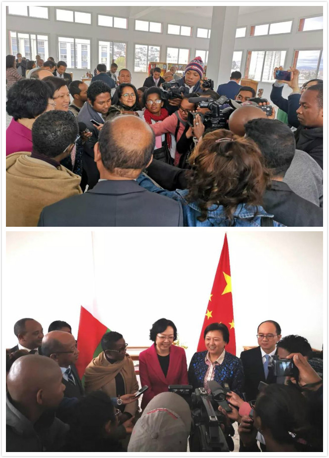 马达加斯加国家电视台,我的电视,国家电台,午报,快报,公民报,Viva电视台,新华社驻马分社,中非日报等媒体记者也参加了“中国图书之窗”揭幕仪式,并对蒋晓芬副巡视员、杨小茸大使和埃莱奥诺尔•祖哈西部长分别进行了采访。