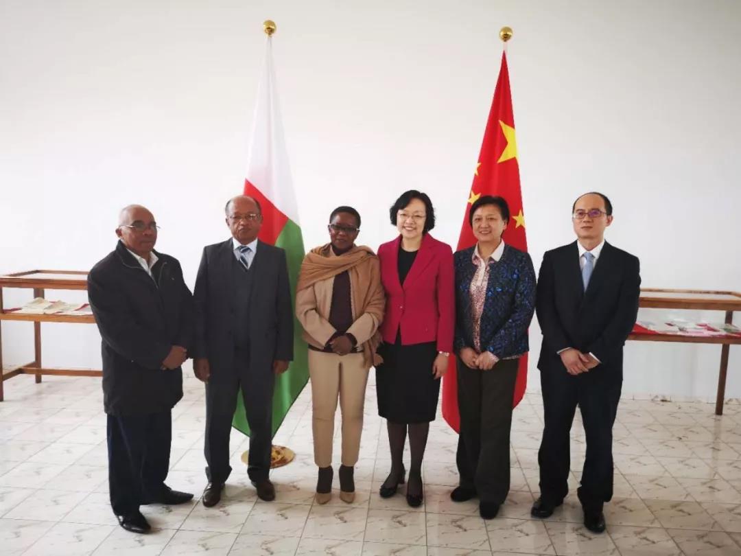 在签署合作协议后,尹士亮副馆长向嘉宾们介绍了此次捐赠给马达加斯加“中国图书之窗”的200册法文、英文图书,这些图书涵盖了中国古代文学艺术、人文思想、历史地理以及当代中国政治、经济、文化发展现状的各个领域。