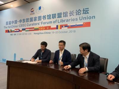 20日上午,首届中国—中东欧国家图书馆联盟馆长论坛在杭州图书馆举行。论坛通过了《中国—中东欧国家图书馆联盟成立宣言》和《中国—中东欧国家图书馆联盟2019—2020年行动计划》,这标志着中国·中东欧国家图书馆联盟正式成立。同时,联盟秘书处设在了杭州图书馆。文化和旅游部向杭州图书馆授予“中国-中东欧国家图书馆联盟秘书处”牌匾。金陵图书馆馆长董群代表我馆签署联盟相关合作文件,旨在通过这一便捷、高效的中外文化交流平台,进一步促进与他国之间的文化互动、推动与其他图书馆之间的业务合作和交流。