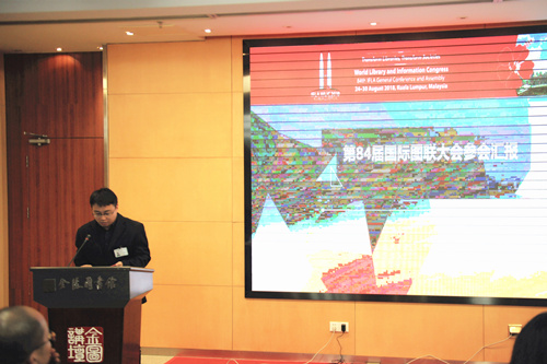 在随后进行的业务学习交流环节中,首先出场的系统技术部王承冠主任与大家交流了他在马来西亚吉隆坡参加第84届国际图联大会的情况。他先介绍了国际图联大会作为世界图书馆界最具权威、最有影响力的国际组织所秉持的理念与开展的工作,接着具体讲述了本届国际图联大会以“图书馆转型,社会转型”为主题,举办各类会议总计249场,超过3000名各国代表参加大会的盛况。最后还介绍了他赴马来西亚国家图书馆现场参观的感受和思考。接下来,资源开发部徐昊丰副主任分享了他作为获奖代表,参加“2018年科普阅读推广专业委员会工作年会”的心得体会。我馆“科普联盟”在第二届科普阅读推广案例征集活动中获得三等奖。徐主任还重点介绍了中科院文献情报中心的获奖案例,并与对方初步达成了合作意向,交流最后为大家展示了秦皇岛市在阅读空间建设方面的特色举措。公共服务部李灵杰带来了她参加“阅读推广人培育行动(第十一期)”的感想与体会,她从“空间再造”“立体阅读”“城市书房”等角度分享了部分阅读推广的精品案例,并通过具体实例和自身体会的结合,让大家对阅读推广有了更加深入的认识和理解。