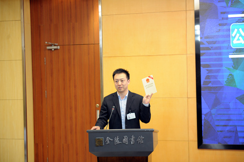 接下来进行的是《公共图书馆法》学习心得交流环节。办公室副主任张磊、采访编目部副主任彭飞和事业研究部吴梦菲先后为大家分享了他们学习《公共图书馆法》的心得。张磊副主任通过对《公共图书馆法》法条的具体解读,分析了公共图书馆的定义、服务、功能定位和建设发展,以《公共图书馆法》“再定位”公共图书馆;彭飞副主任结合工作实际,从文献资源建设的角度解读了《公共图书馆法》,并就《公共图书馆法》对文献资源建设工作,尤其是呈缴本制度的法律保障效力方面提出了个人思考;吴梦菲则从中外图书馆法对比的角度,论述了意大利公共图书馆法实施后,佛罗伦萨国家中央图书馆在贯彻与执行中出现的一系列问题以及带给我们的启示。