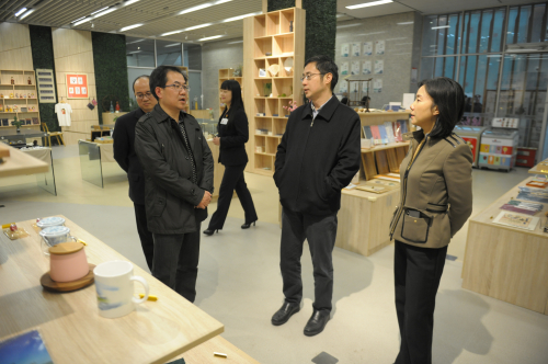 陈司长一行重点参观了我馆的会展区、文创商店、特藏阅览室等主要读者服务阵地,并详细了解了各个窗口的服务功能。在参观过程中,焦书记汇报了我馆在全民阅读推广、品牌服务项目和文创产品开发等方面所做的工作。在特藏阅读室,陈司长一行仔细观看了多个古籍保护成果展览以及馆藏古籍宣传推广活动,对我馆所开展的古籍保护和宣传推广工作给予了充分肯定,并对古籍保护工作成果的活化利用提出了更高要求。