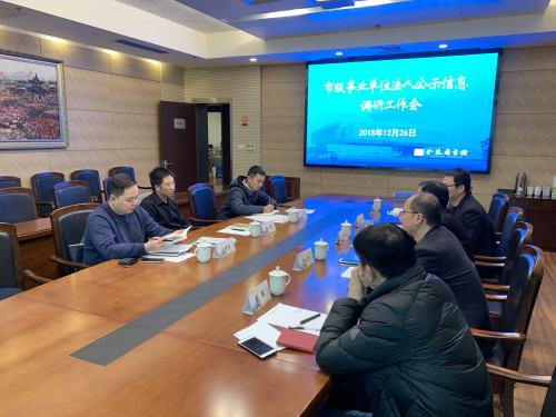 2018年12月26日,市编办事业单位登记管理局副局长赵毅、副处长杜健健、科员王宽一行三人莅临我馆开展市级事业单位法人公示信息实地核查工作,南京市文广新局组织人事处科长戴军、金陵图书馆书记焦翔、副馆长尹士亮、办公室副主任张磊和金陵图书馆理事会秘书周军陪同调研。核查组通过召开调研工作会、听汇报、查阅资料、走访部门、面对面核对数据等形式,开展核查工作。