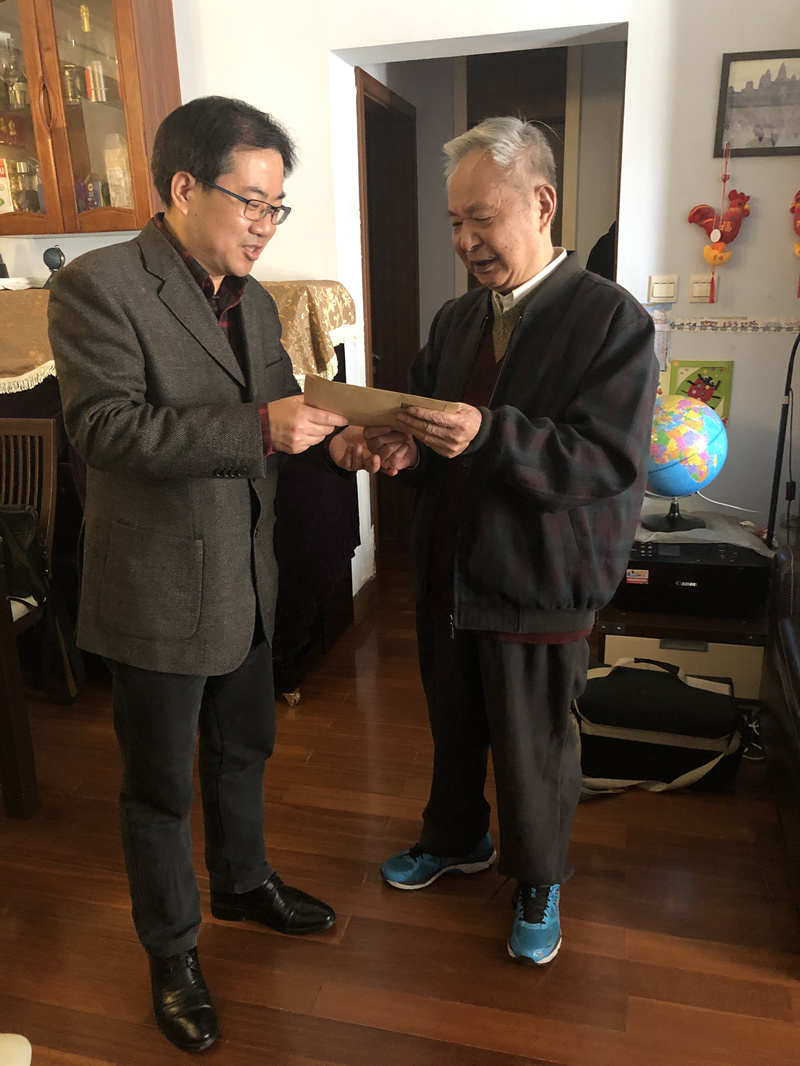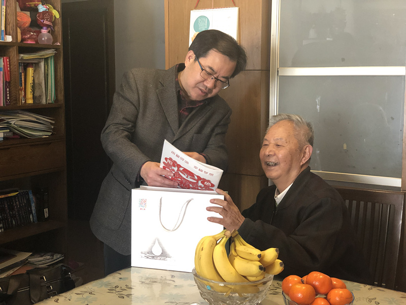 3月19日,图书馆党总支焦翔书记带领筹备组部分同志一行四人来到上海,看望周老并进行实地采访。焦书记与周老亲切交谈,共叙家常,诚挚感谢周老等金图前辈们对图书馆早期建设发展所做出的卓越贡献,并代表图书馆送上果篮和慰问金,祝愿老人幸福安康。焦书记还简单介绍了金图近年来的建设和发展情况。周老在感谢图书馆对自己关心问候的同时,也为金图今天取得的成就感到由衷的喜悦和自豪。