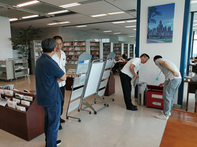 会议结束后,张磊副主任带领办公室和物业管理处有关人员,对我馆各楼层阅览室、配电房和活动场所进行了安全和卫生检查,尤其重点检查了消防设施、安全通道、用电设备的使用及维护状况