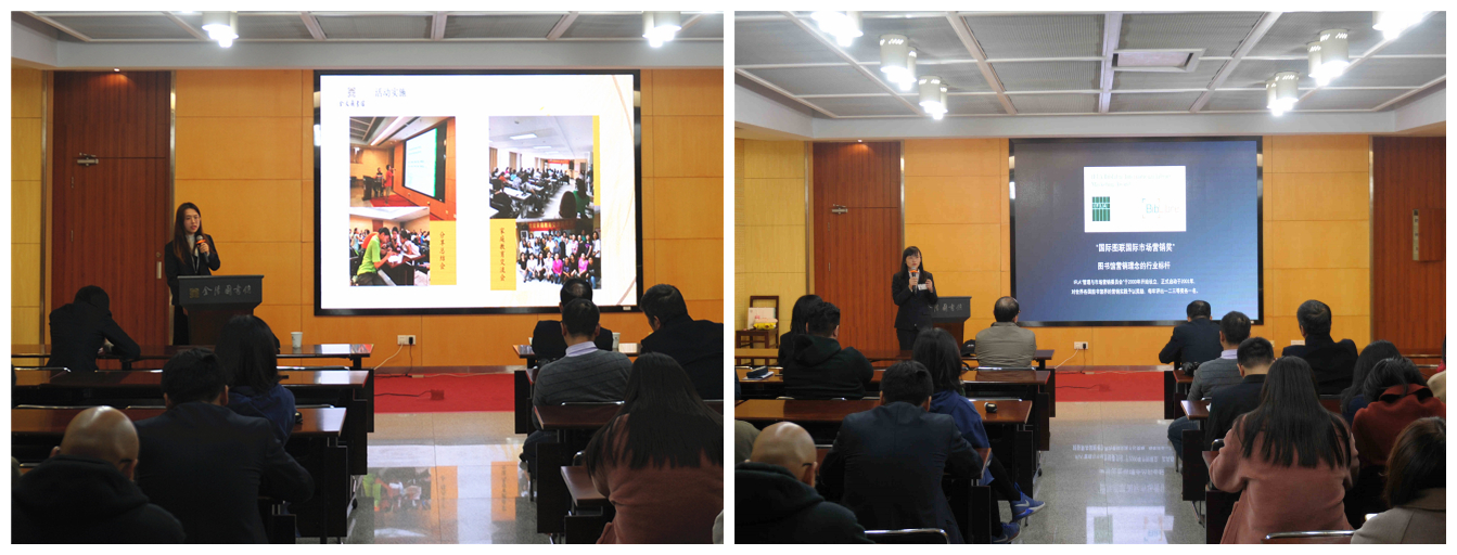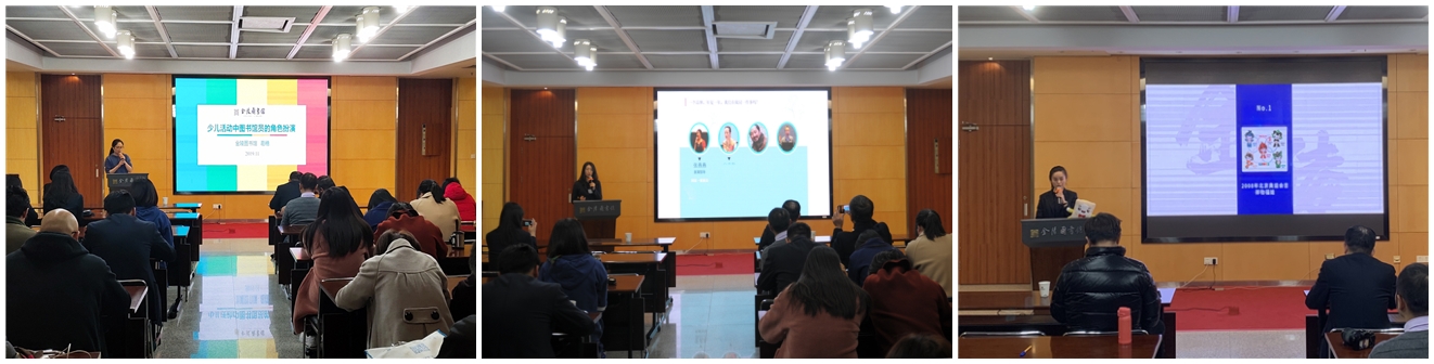 接下来上台授课的是金图少儿工作部的葛穗,她紧密结合自身工作实践,介绍了少儿工作部阅读推广活动情况;同时利用丰富的工作经验,按照自己的理解对现有的少儿活动进行再分类;最后引用了大量实际案例,生动诠释了少儿活动中图书馆员的角色扮演。其后,文创发展部的汪然从金图老牌公益项目“朗读者”这个案例的发展创新历程说起,引出了公共图书馆阅读推广品牌建设的三连问,即如何将活动做大、如何做持久、又如何使品牌建设深入人心,并围绕这三个议题与大家共同思考与探讨。最后,同样来自文创发展部的王蓓为大家带来“金图吉祥物宣传推广纪实”,她以奥运吉祥物为引子,从案例借鉴、设计思路、开发意义、开发进度以及未来方向等几个方面讲述了“阅美家园”诞生与成长的历程。