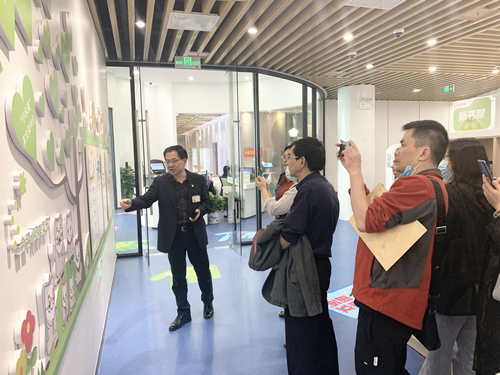 焦书记带领许馆一行重点参观了我馆读者服务窗口,详细介绍了不同服务区域的功能,并考察了我馆新近改造开放的“阅·荐空间”、少儿阅览室、盲人阅览室等。参观结束后,双方围绕图书馆“十四五”规划编制等工作进行座谈交流。焦书记首先代表金陵图书馆欢迎安徽省图书馆同仁前来参观考察,介绍了我馆“十三五”期间取得的一些工作成果,重点围绕南京共享图书馆及市区联动相关工作向安徽馆一行作了介绍。