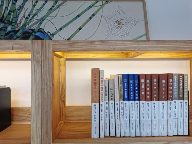 窗明几净,绿植清新,木制书桌与书墙环立……220平米的书房内,放置有金陵图书馆首批精选并投放的1000余册书籍,包含党建、社科、文学、历史、地理、自然科学、综合性图书等多种类别,能满足不同市民读者的阅读需求。