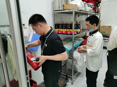 首先,检查组来到职工食堂的后厨,检查燃气胶管是否存在老化、皲裂现象,燃气报警器是否正常工作,灭火器材是否在有效期内,食材进货台账是否规范。方炜副馆长现场询问食堂工作人员对于安全设施位置是否了解、燃气使用是否规范、食品留样是否落实等,他要求食堂负责人要提高安全意识,定期对燃气阀门、灶具开关、电闸、水阀等进行检查,避免发生安全事故,时刻绷紧安全生产这根弦。