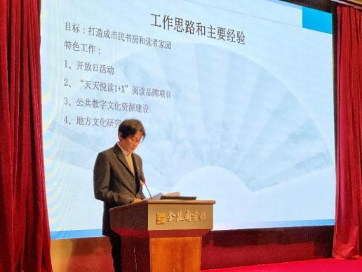 接着,分馆建设部的张俊同志向大家介绍了他近期参加基层图书馆创新服务与高质量发展研讨班的流程,并回顾了专家关于基层图书馆服务创新与效能提升、总分馆体系建设等讲座的主要内容,着重阐发了总分馆体系的重要意义。